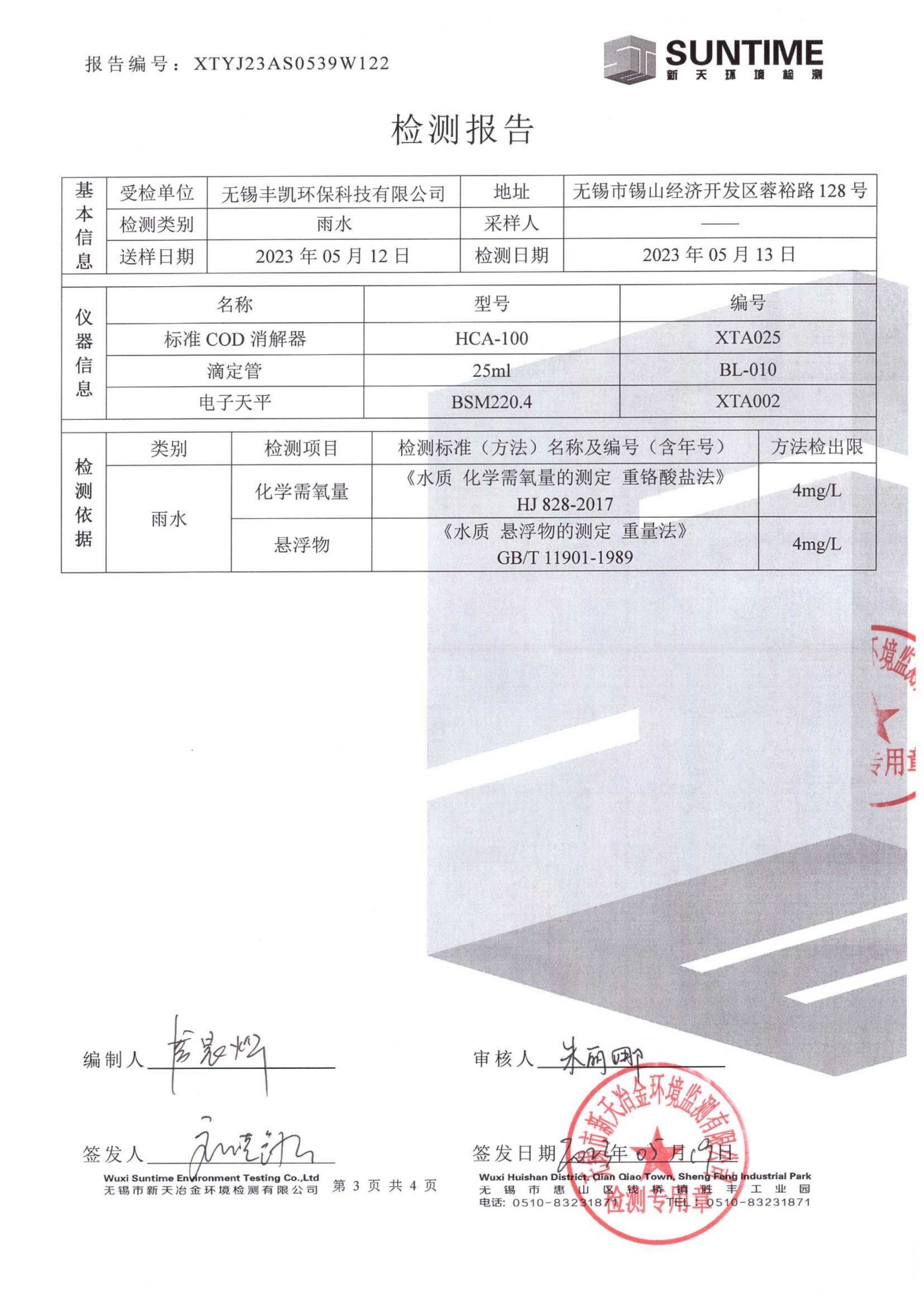 雨水 水质检测报告