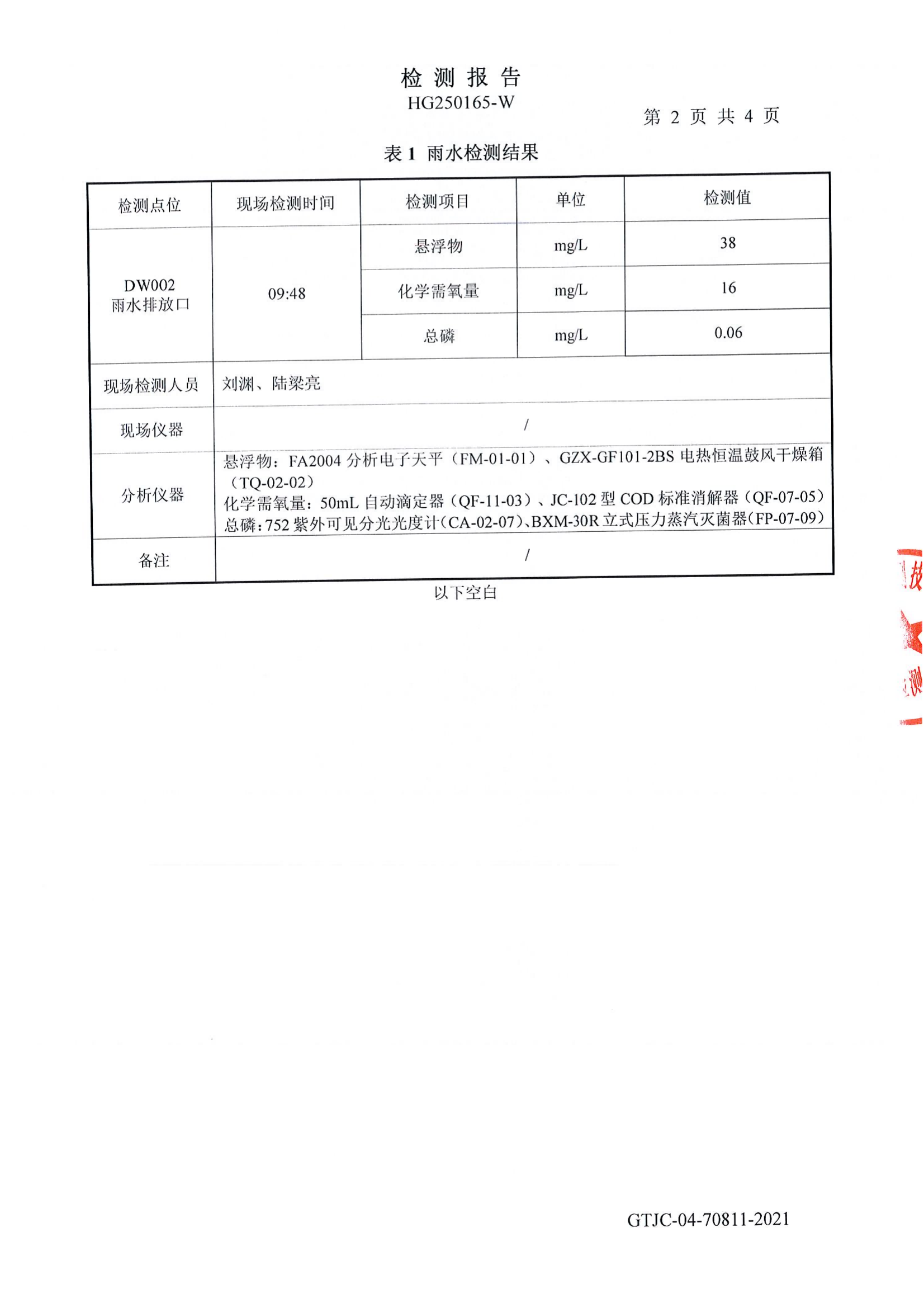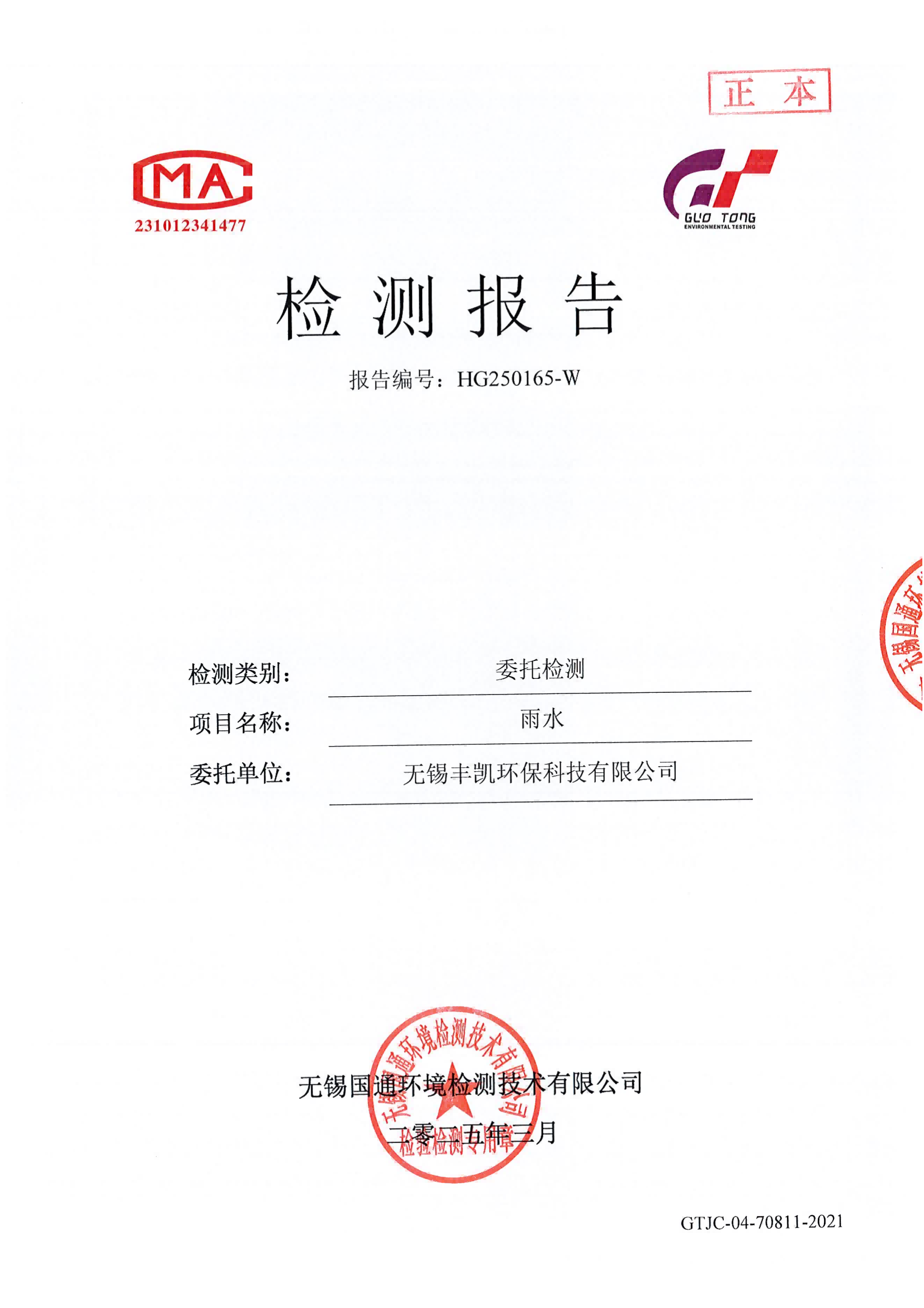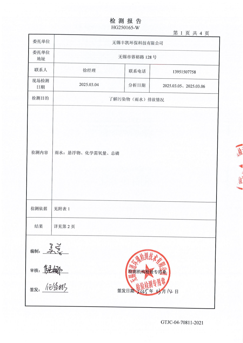 丰凯雨水委托检测报告HG250165-W