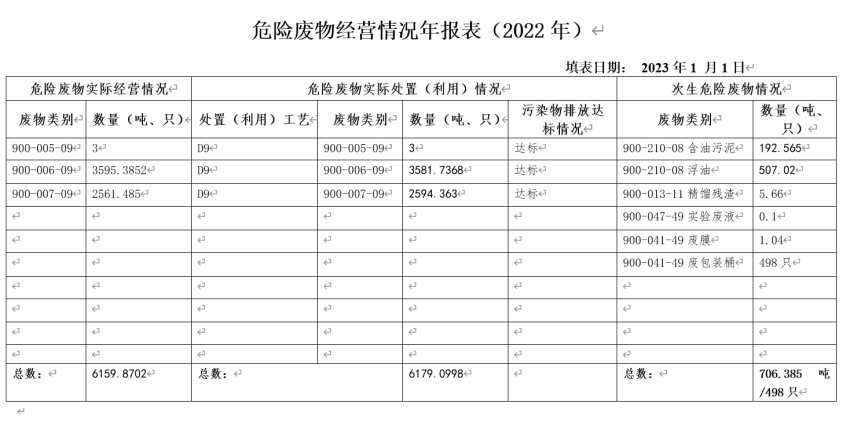 2022年危险废物经营情况年报表